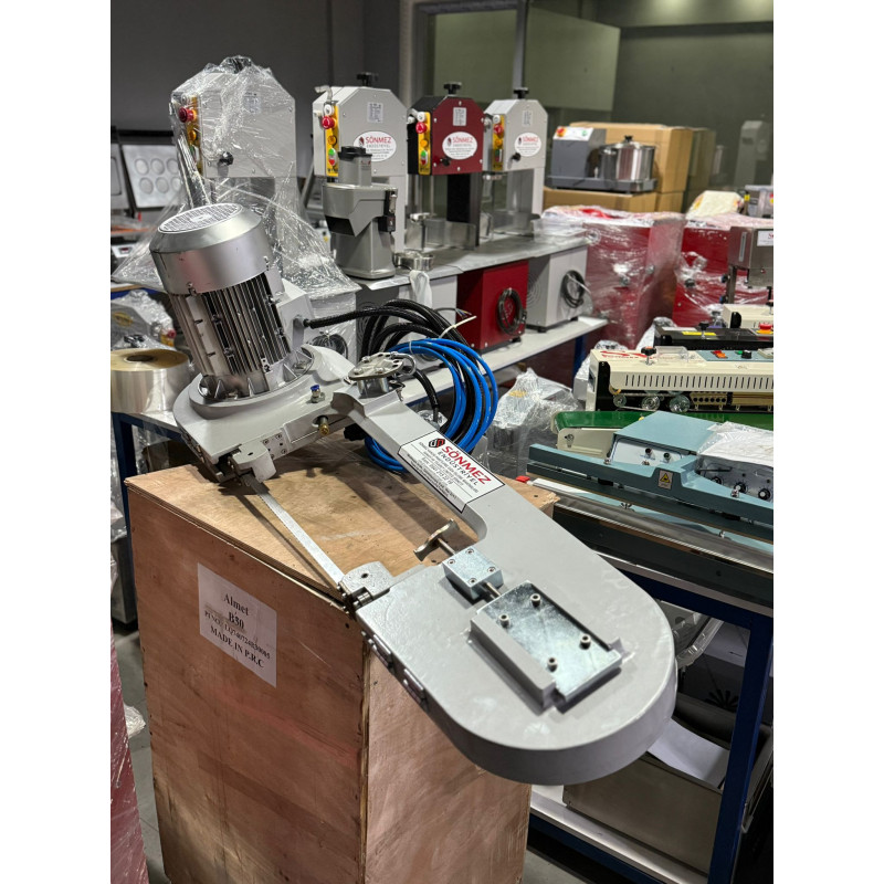 Sönmez Karkas Sulu Testere Karkas Kemik Kesme Makinesi 2,2 Kw Elektrik Motoru Paslanmaz Alüminyum Gövde ve Hafif Tasarım 2850 X 20 Mm Çift Dikiş Testere 3 Aşamalı Emniyet Kilidi Makine Ağırlığı 61 Kg 24V Tam Emniyetli Elektrik Panosu