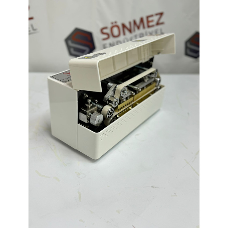 Sönmez Vakum Frb-640 Otomatik Yatay Poşet Ağzı Kapatma Makinesi Eko Model Yapıştırma Makinası Yürüyen Bantlı Poşet Ağzı Kapama Makinesi FRD-750 serisi bantlı poşet ağzı kapama makineleri çeşitli malzemelerden yapılmış olan bir çok plastik filmi kaplama özelliğine sahiptir. Kabartmalı baskı cihazı ve sayım cihazı eklenebilir.